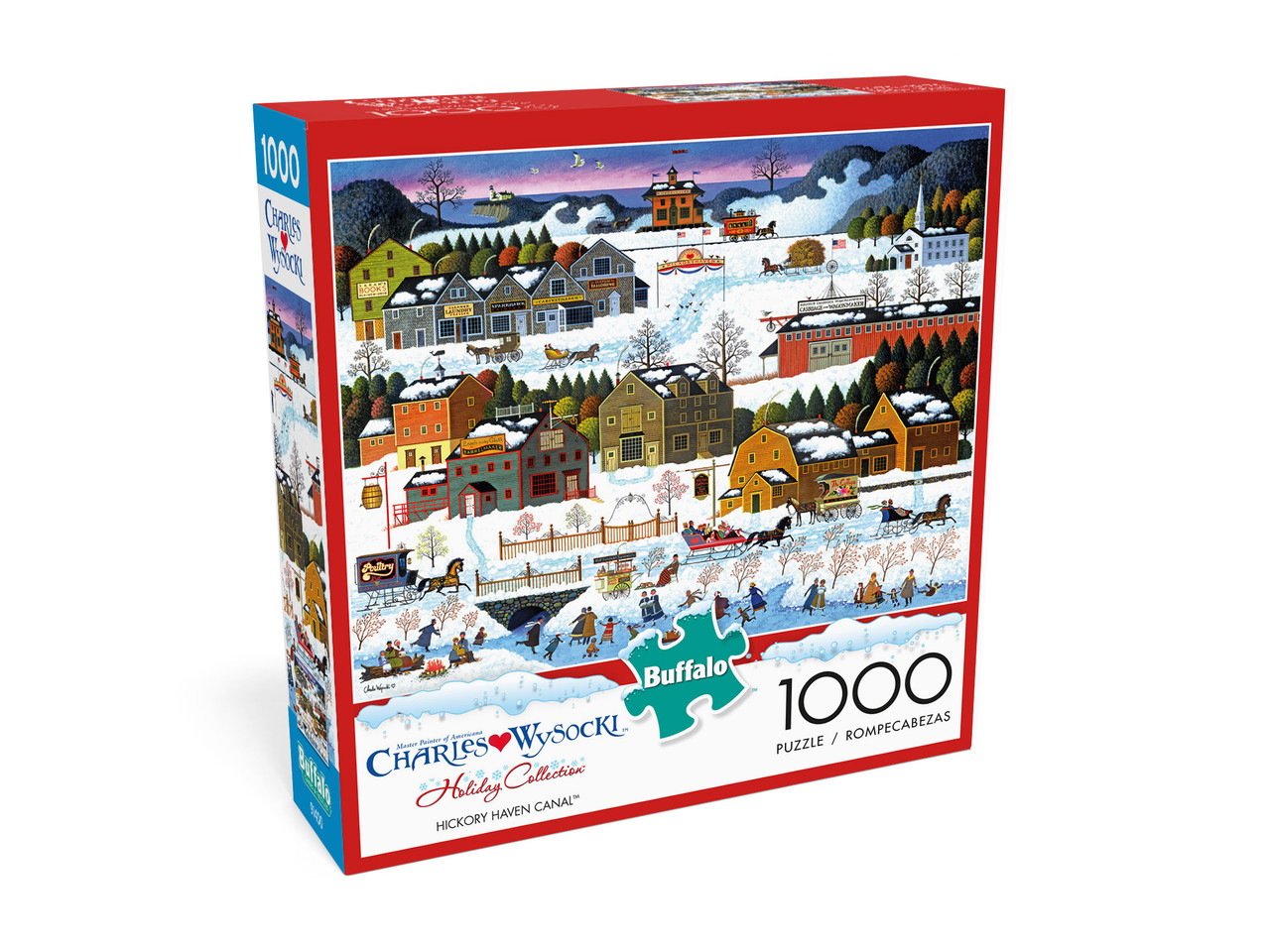 Buffalo GamesThe ideal winter town is here, in Hickory Haven Canal, where you will spot a horse-drawn sled carrying its townspeople, and dozens ice skating on the frozen lake. Hickory Haven Canal is a 1,000 piece jigsaw puzzle by artist Charles Wysocki.
