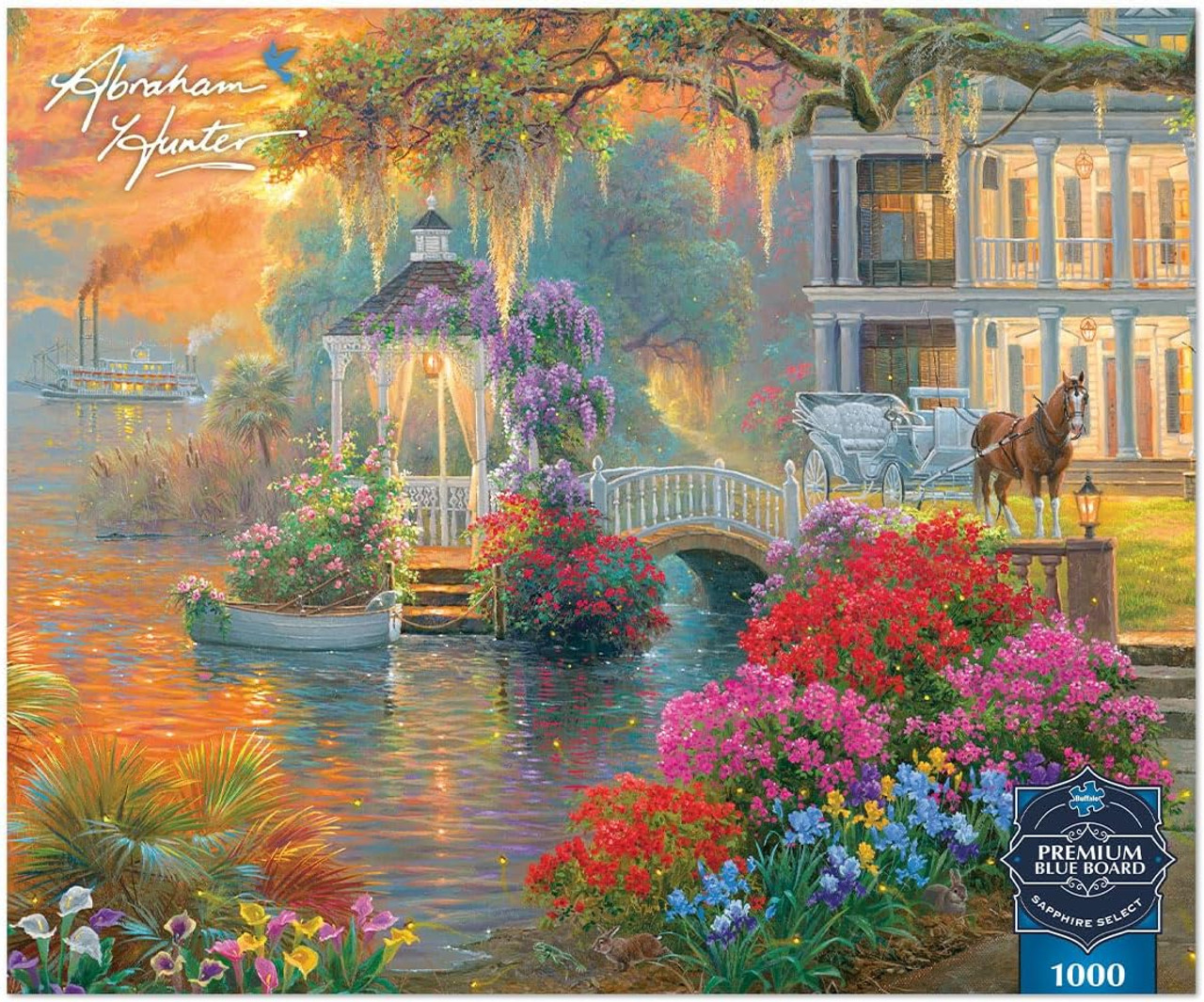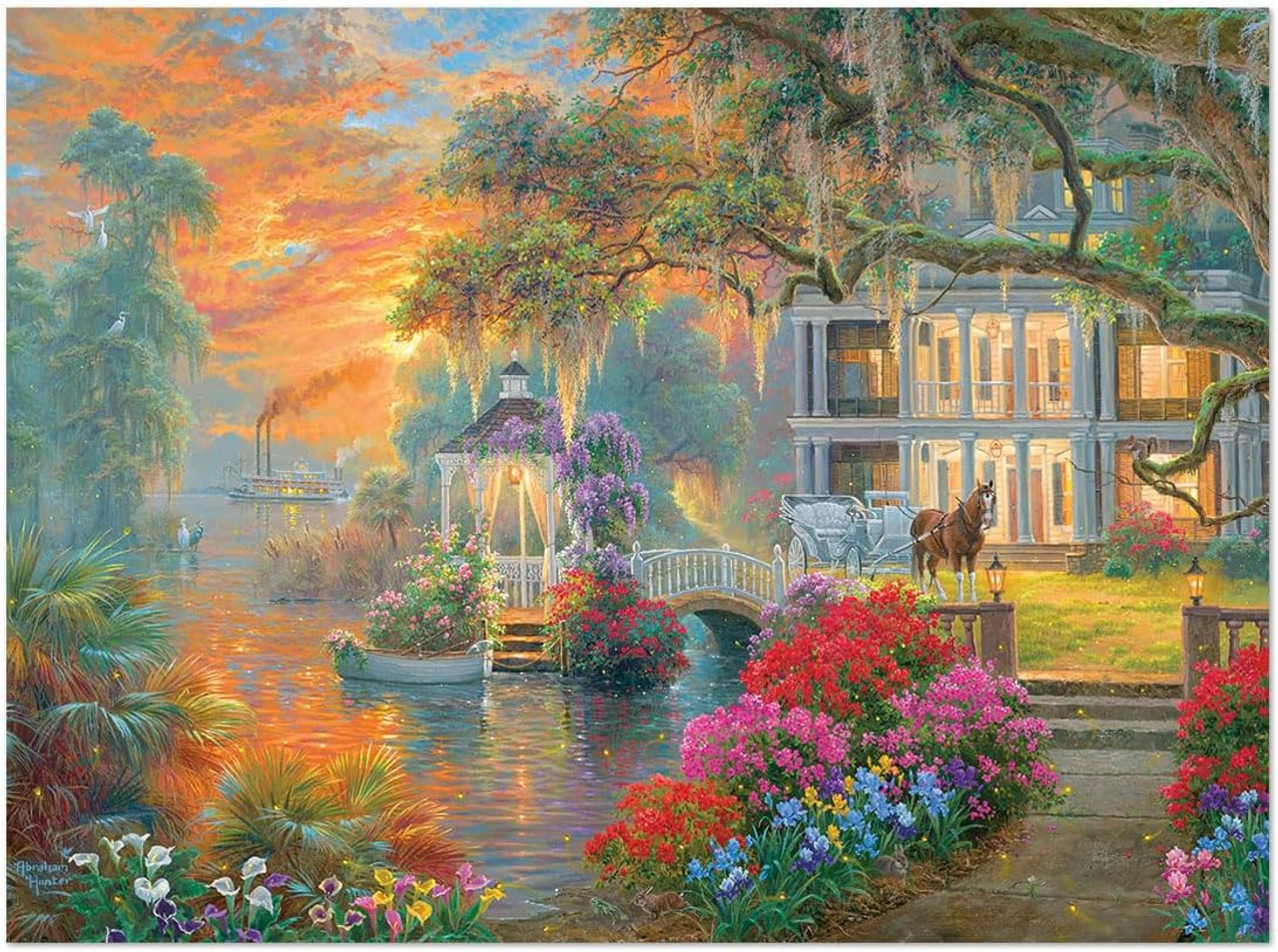 Southern Charm: Bring Abraham Hunter's stunning depictions of country life into your home with this 1000 piece jigsaw puzzle. A colorful and difficult puzzle for adults who love a challenge.